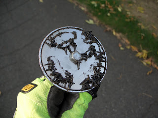 The rest of the ride home was uneventful, but Tim mentioned that he has had a lot of flats by tack in the last month, and had tried various ways to avoid them. He tried using Slime tubes, Kevlar tires, tire liners etc all to no avail. I resolved to take some time on Saturday and see if I could locate the source of these tacks and clean them up.